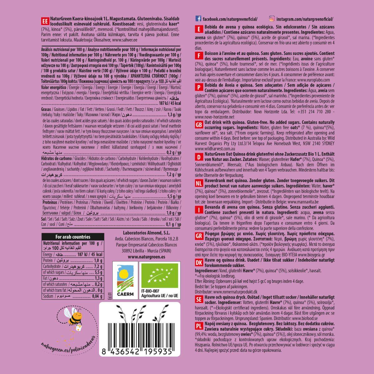 Alle Informationen über "Glutenfreies Bio-Getränk aus Hafer und Quinoa NaturGreen 1 l"