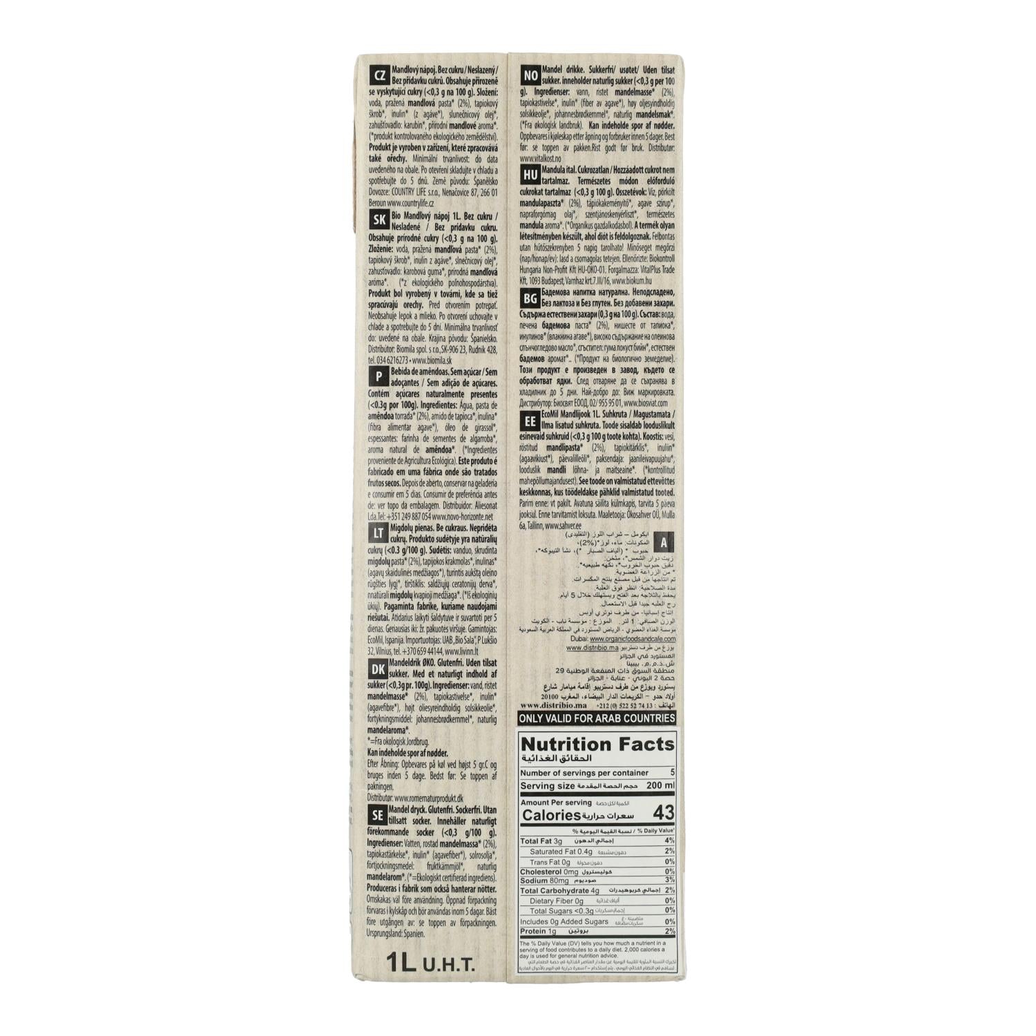 Alle Informationen über "Pflanzliches Getränk Mandel Classic Nature Bio ohne Zucker Ecomil 1 l"