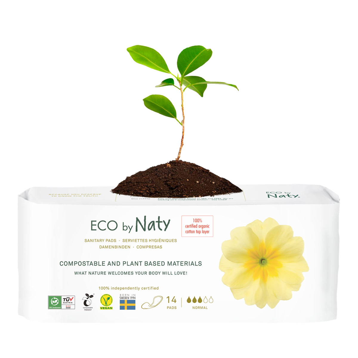 Gemacht Hergestellt aus kompostierbaren und pflanzlichen Materialien. Öko-Damenbinden. Die Produkte von Naty sehen genauso aus und haben die gleiche Funktion wie Damenbinden. normal, aber die Erfahrung, Damenbinden ohne Plastik zu verwenden Es basiert auf Erdöl und ist frei von schädlichen Chemikalien, daher ist es viel natürlicher und Atmungsaktiv, probieren Sie sie selbst! Unsere ultraweichen Pads Dünne Laken absorbieren bis zum Zehnfachen ihres Eigengewichts und sorgen so für ein trockenes Tragegefühl. für einen längeren Zeitraum.