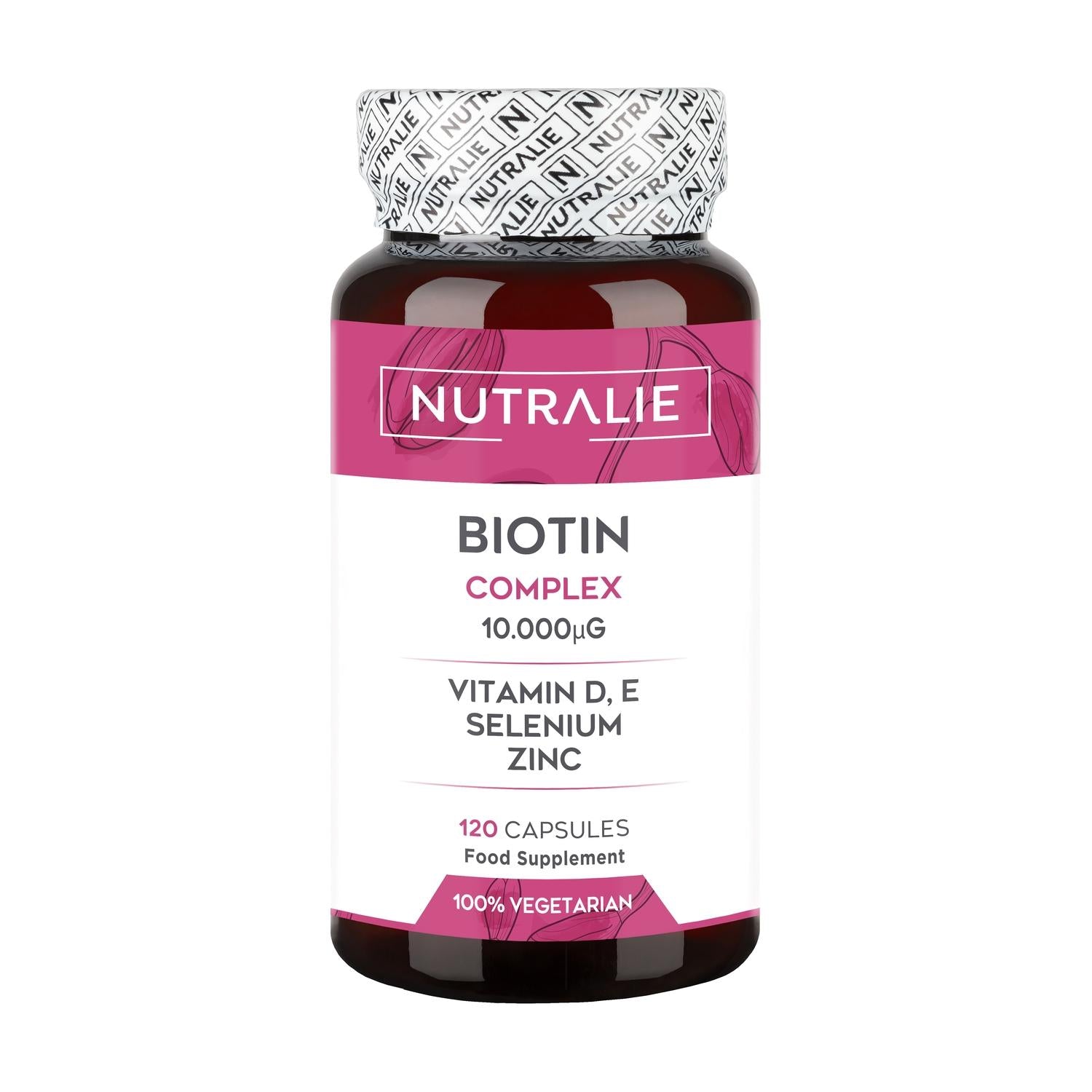 Nutralie Biotin-Komplex 10000mcg für Haare, Haut und Nägel, 120 Kapseln
