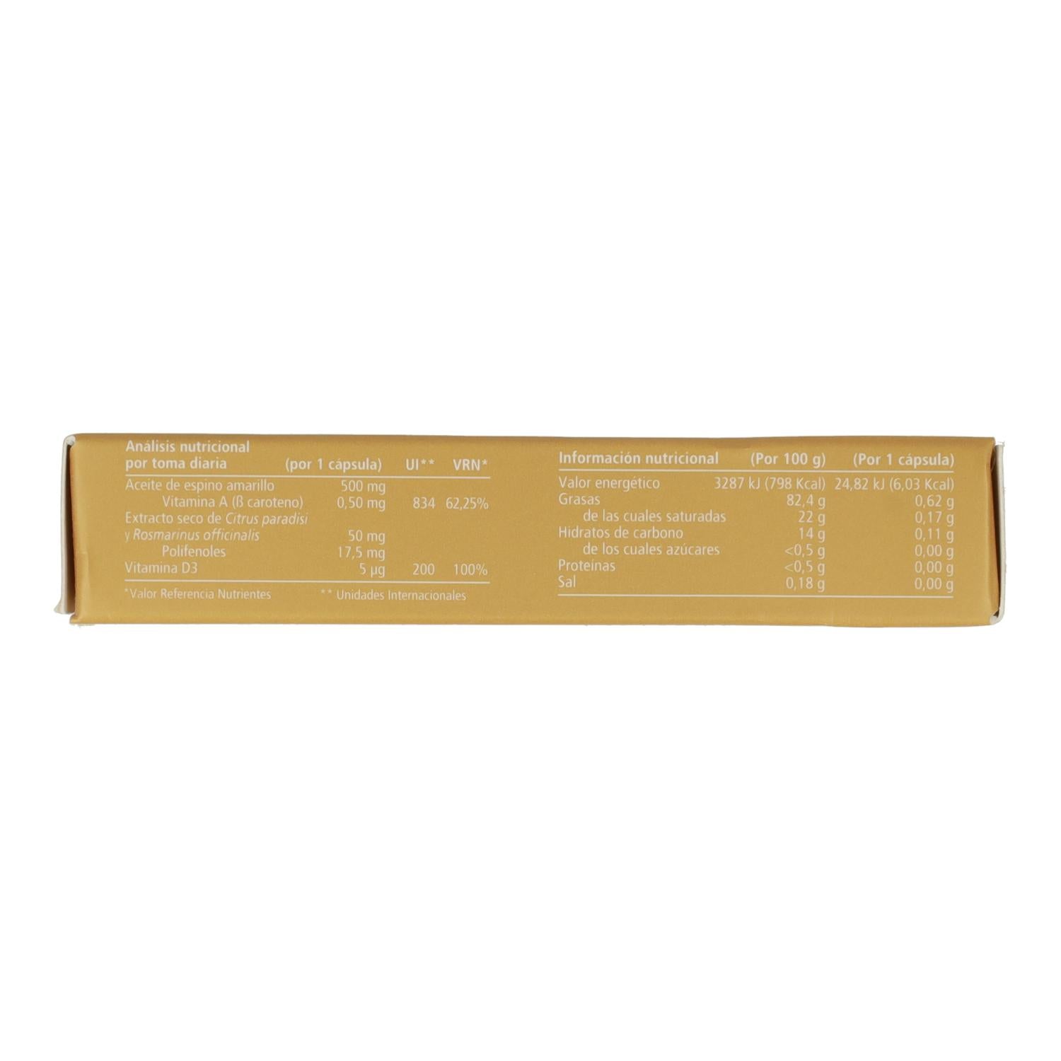 Es handelt sich um eine Kombination aus exklusiven, 100% natürlichen Extrakten: Sanddornöl, Grapefruit- und Rosmarinextrakt sowie Vitamin D, mit feuchtigkeitsspendenden und antioxidativen Eigenschaften.