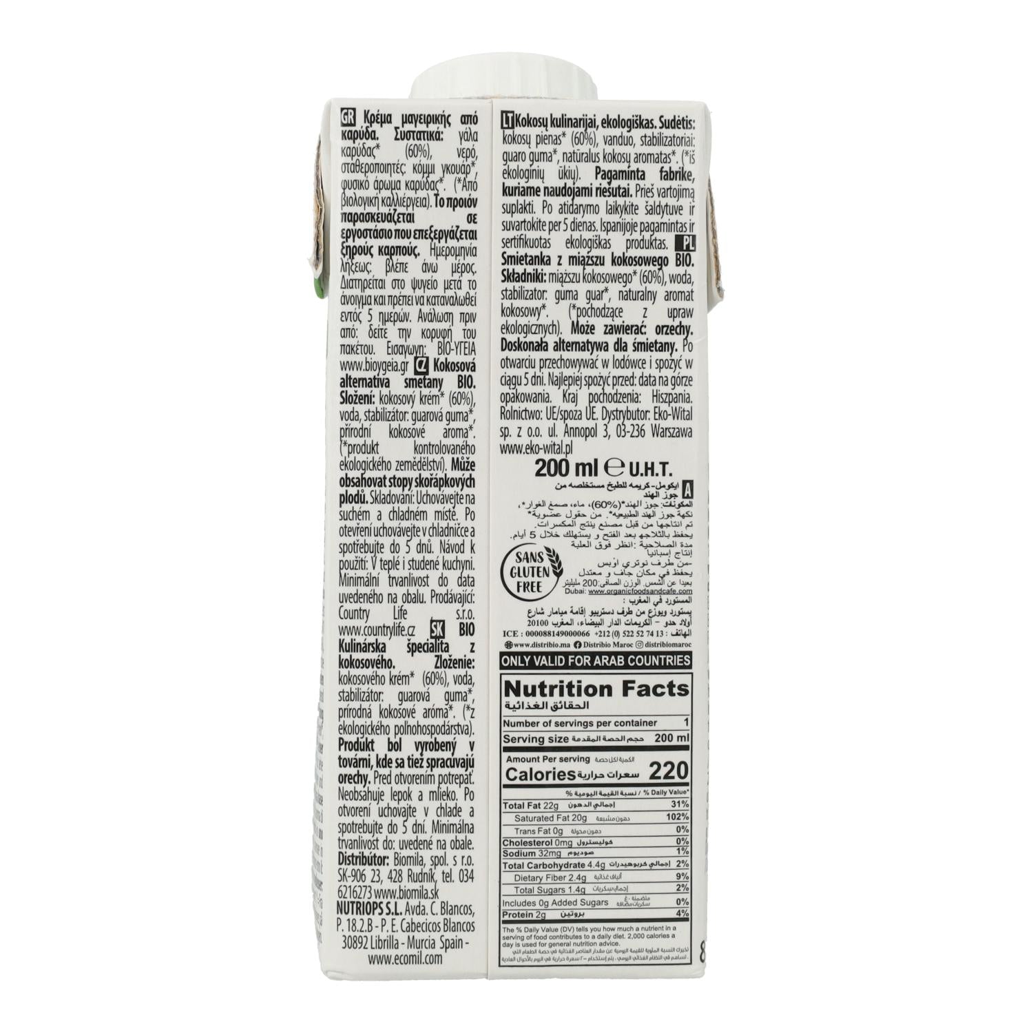 Crema a base de leche de coco bio para cocinar, alternativa a las natas o cremas a base de soja.