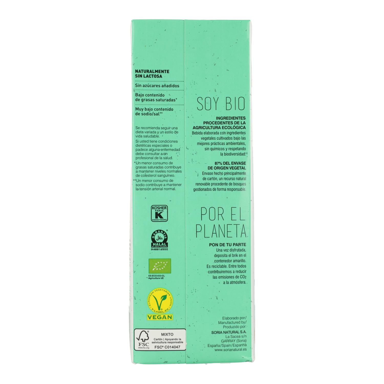 La Bebida de Avena Soria Natural es una alternativa vegetal a la leche, elaborada con ingredientes procedentes de agricultura ecológica. Es naturalmente sin lactosa, sin azúcares añadidos, baja en grasas saturadas y con muy bajo contenido en sal. Perfecta para consumir sola, en desayunos, con café, cereales, batidos o recetas de cocina y repostería. Su envase está fabricado en un 87% con materiales de origen vegetal, cuidando tanto tu salud como el planeta.