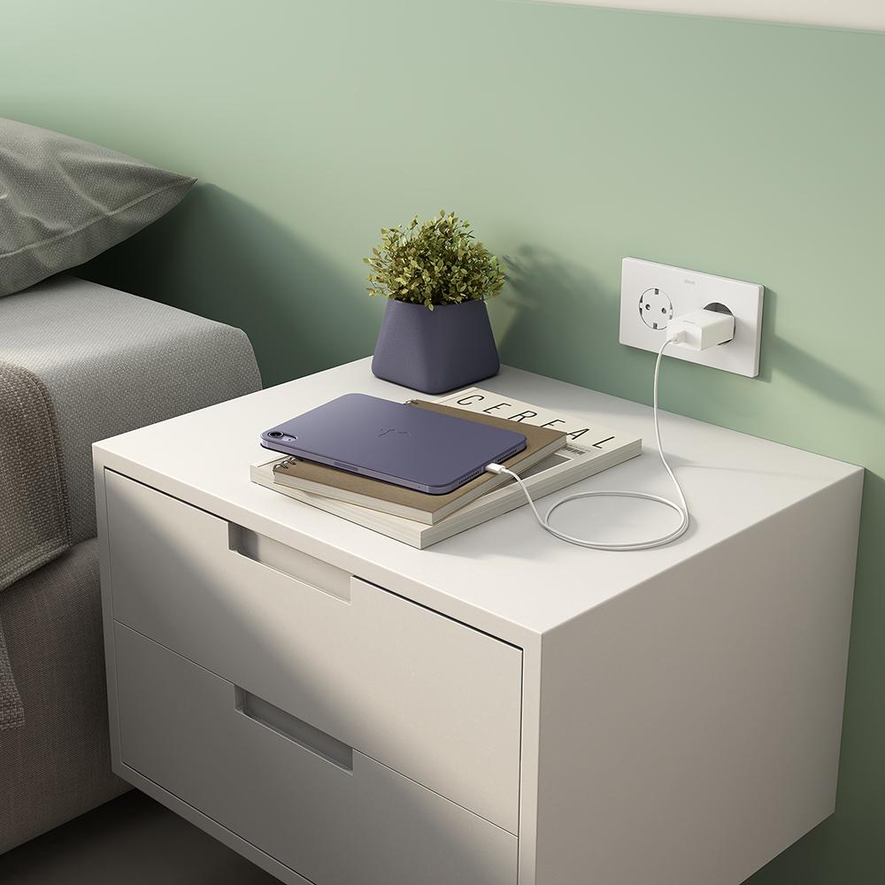 El cargador de Simon quick charge con un puerto USB C cuenta con una potencia de carga máxima de 20,0W. La tecnología quick charge permite una carga rápida de los dispositivos conectados. Características: 1 puerto USB tipo C 3,0A 5,0VDC 15,0W Quick charge Max. 20,0W 100-240V~ 50/60Hz USB O/P: 5,0VDC 3,0A 15,0W 9,0VDC 2,2A 20,0W 12,0VDC 1,7A 20,0W Color: blanco