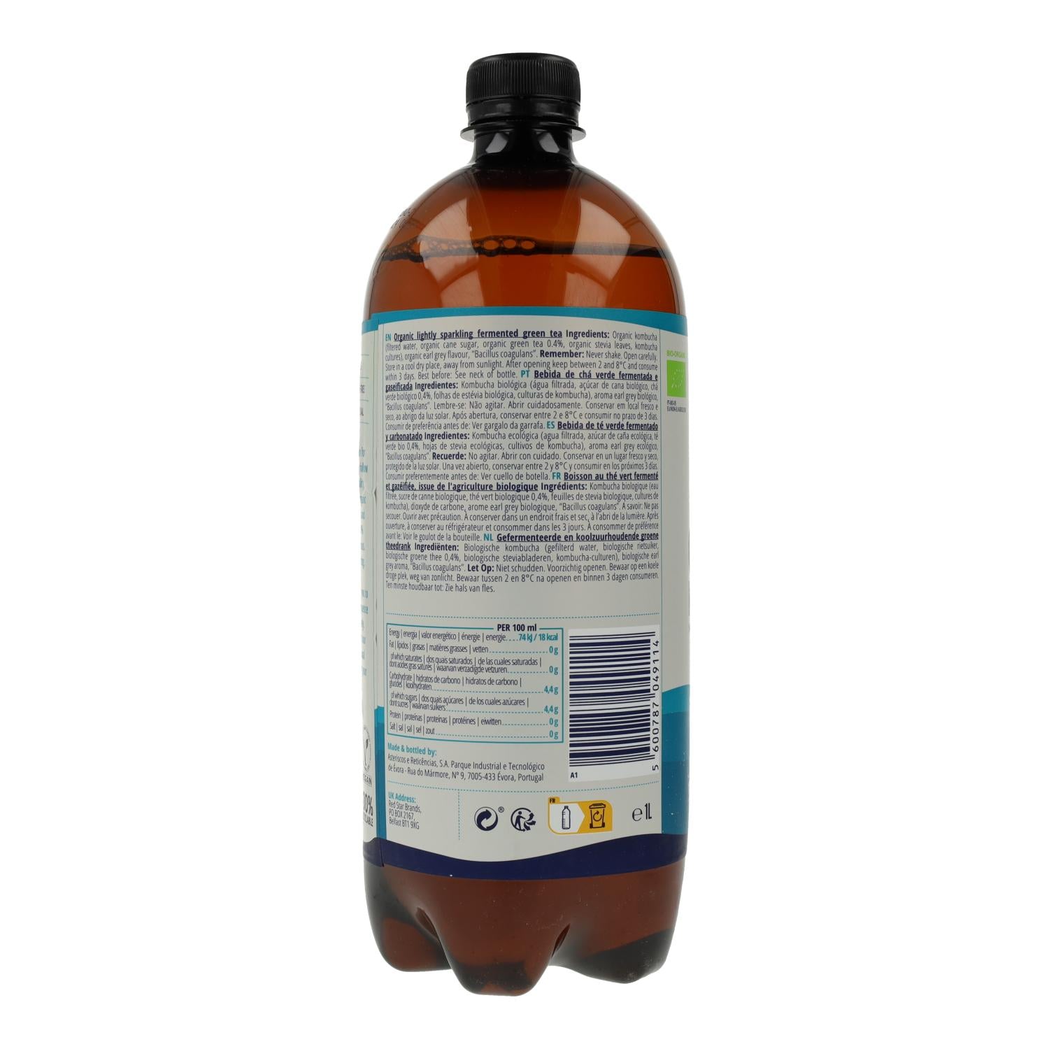 Ingrédients : Eau filtrée par osmose inverse, culture de kombucha vivante pure (bactéries et levures), thé vert*, dioxyde de carbone, sucre de canne* (transformé lors de la fermentation) et extrait de thé*. (*) Issu de l'agriculture biologique