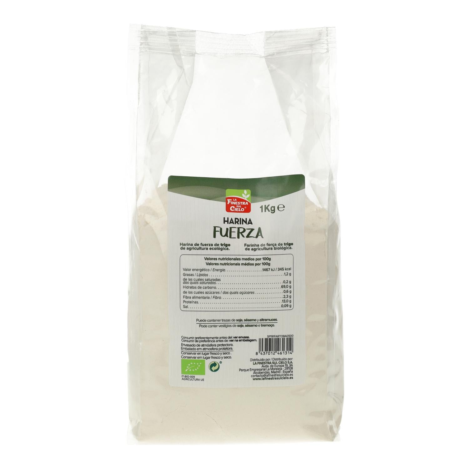 La farine forte, grâce à sa teneur élevée en protéines (14 %), est utilisée pour la fabrication de pâtes, de pains spéciaux et de pâtisseries à longue levée, comme le panettone. Elle peut également servir à renforcer d'autres farines, rendant ainsi la pâte plus élastique. Conditionnée sous atmosphère protectrice, elle est élaborée à partir d'ingrédients issus de l'agriculture biologique.