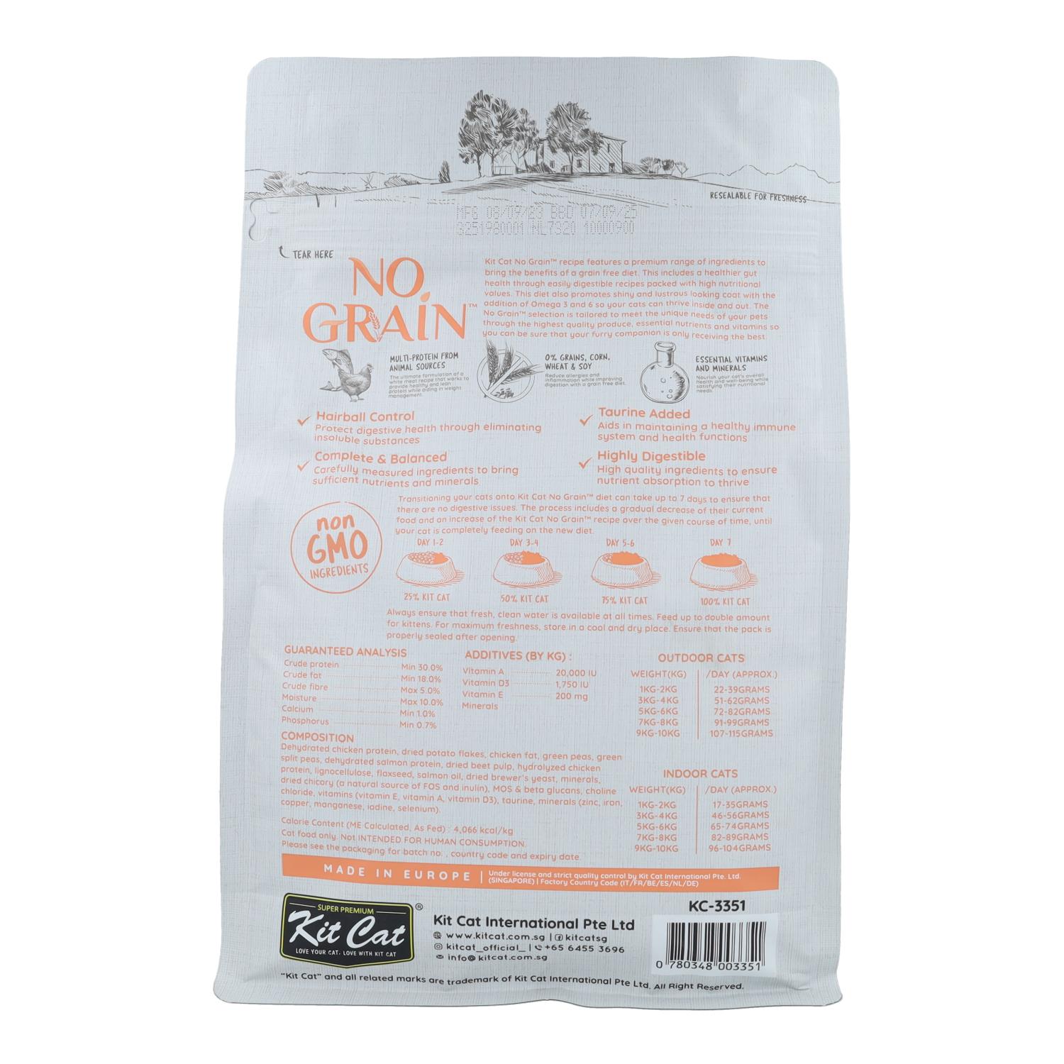 Kit Cat No Grain Cat Food - Poulet & Saumon 1 kg Nourriture naturelle pour chats
