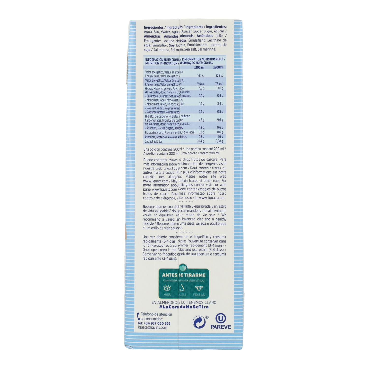 Ingrédients: Eau de Montseny, sucre, amandes (4 %), émulsifiant : lécithine de tournesol, sel marin. Allergènes : amandes. Peut contenir des traces de soja et/ou d'autres fruits à coque.