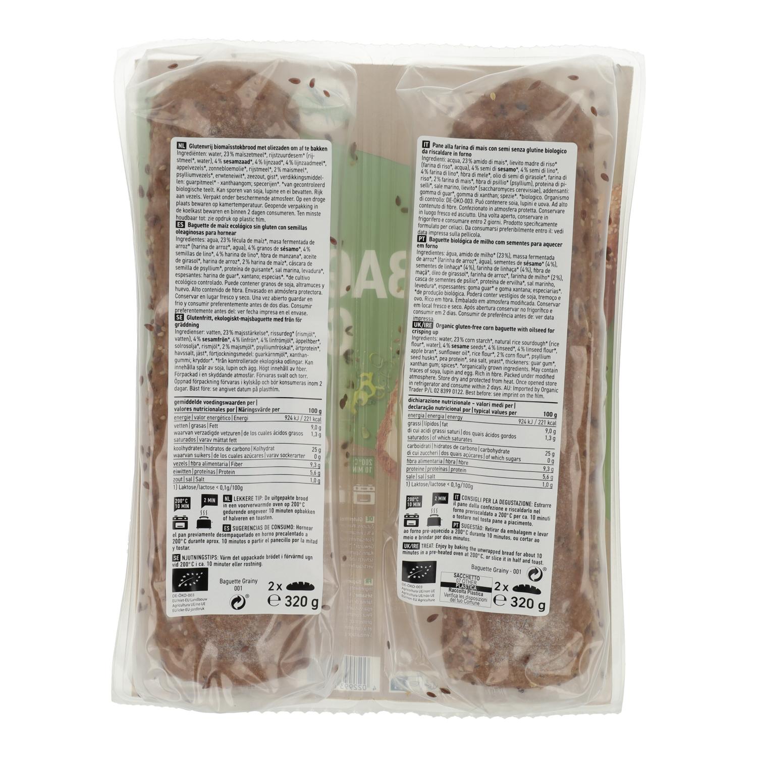 Tutte le informazioni su "Pan baguette semillas grainy Ecológico Sin gluten Schnitzer 320 g"