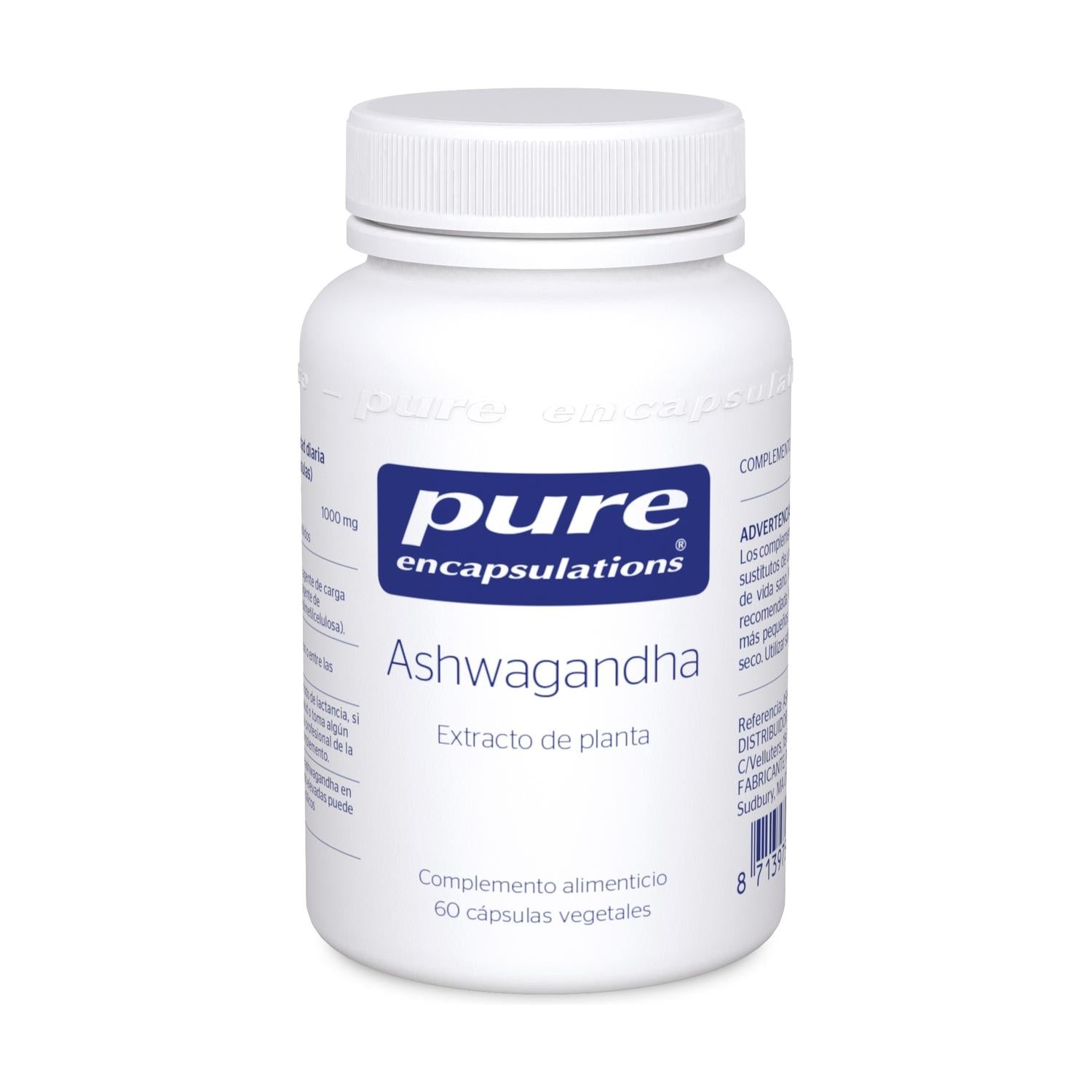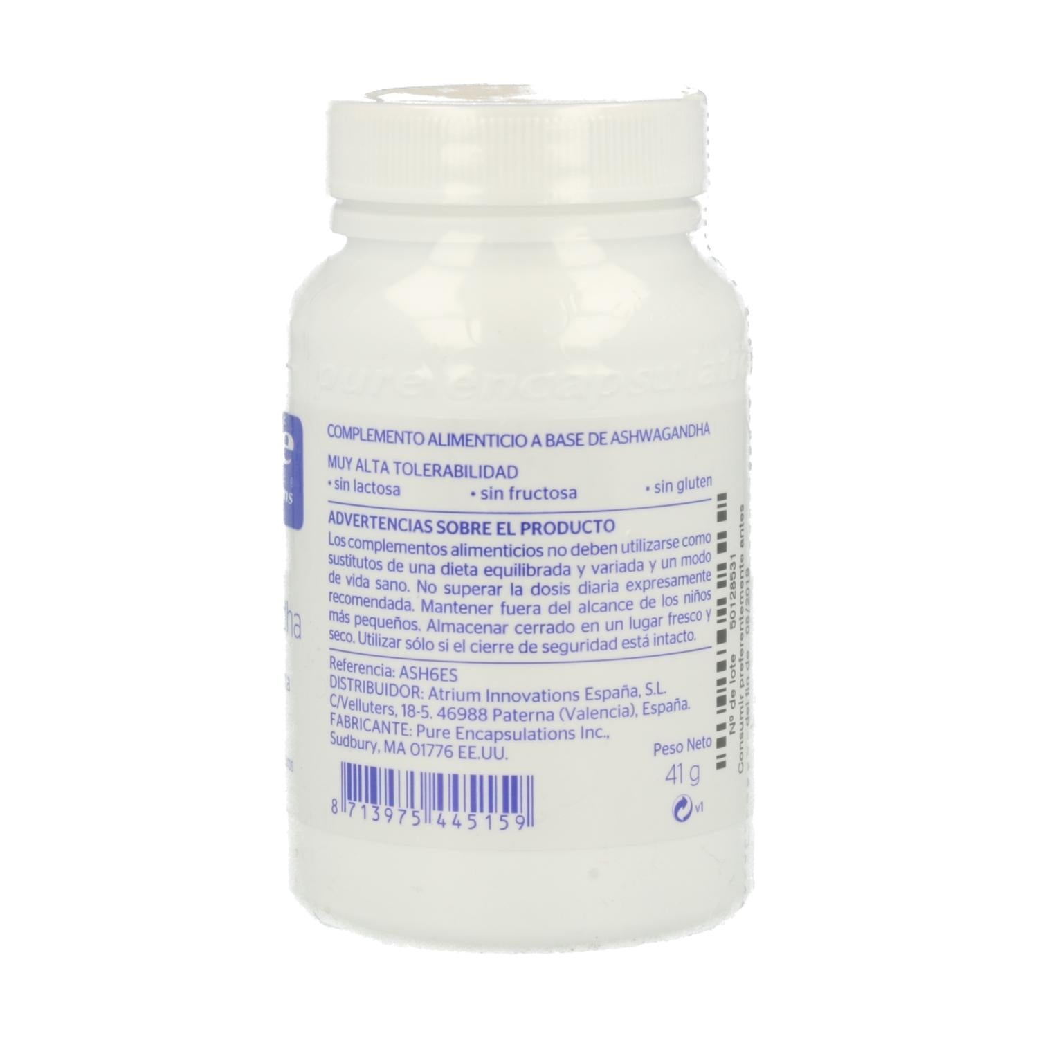 Pure Encapsulations Ashwagandha es un complemento alimenticio que contiene un extracto estandarizado para proporcionar un 2,5% de ácidos withalónidos.