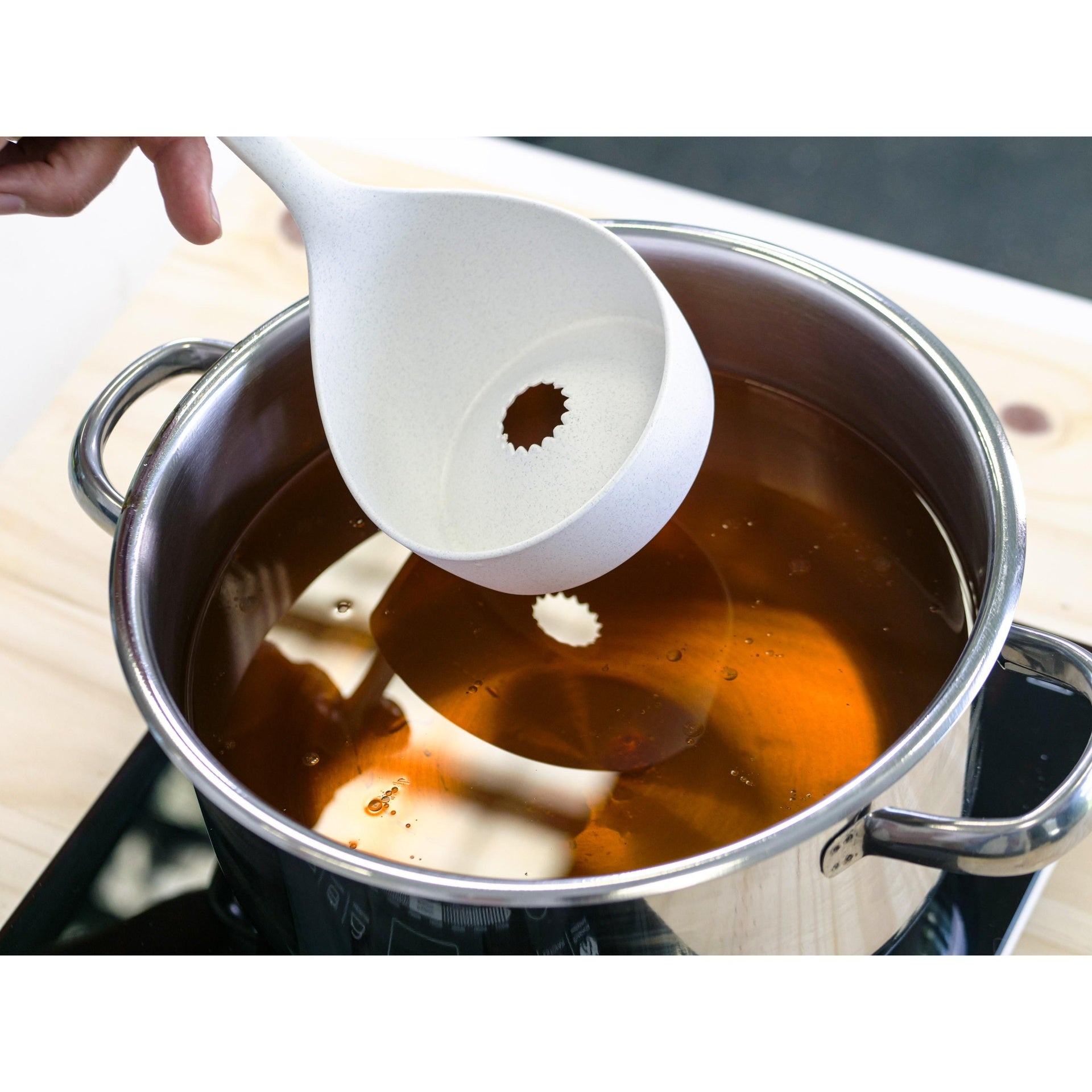 Cucharón específico para retirar el excedente de grasa de las comidas, caldos, guisos, sopas,
