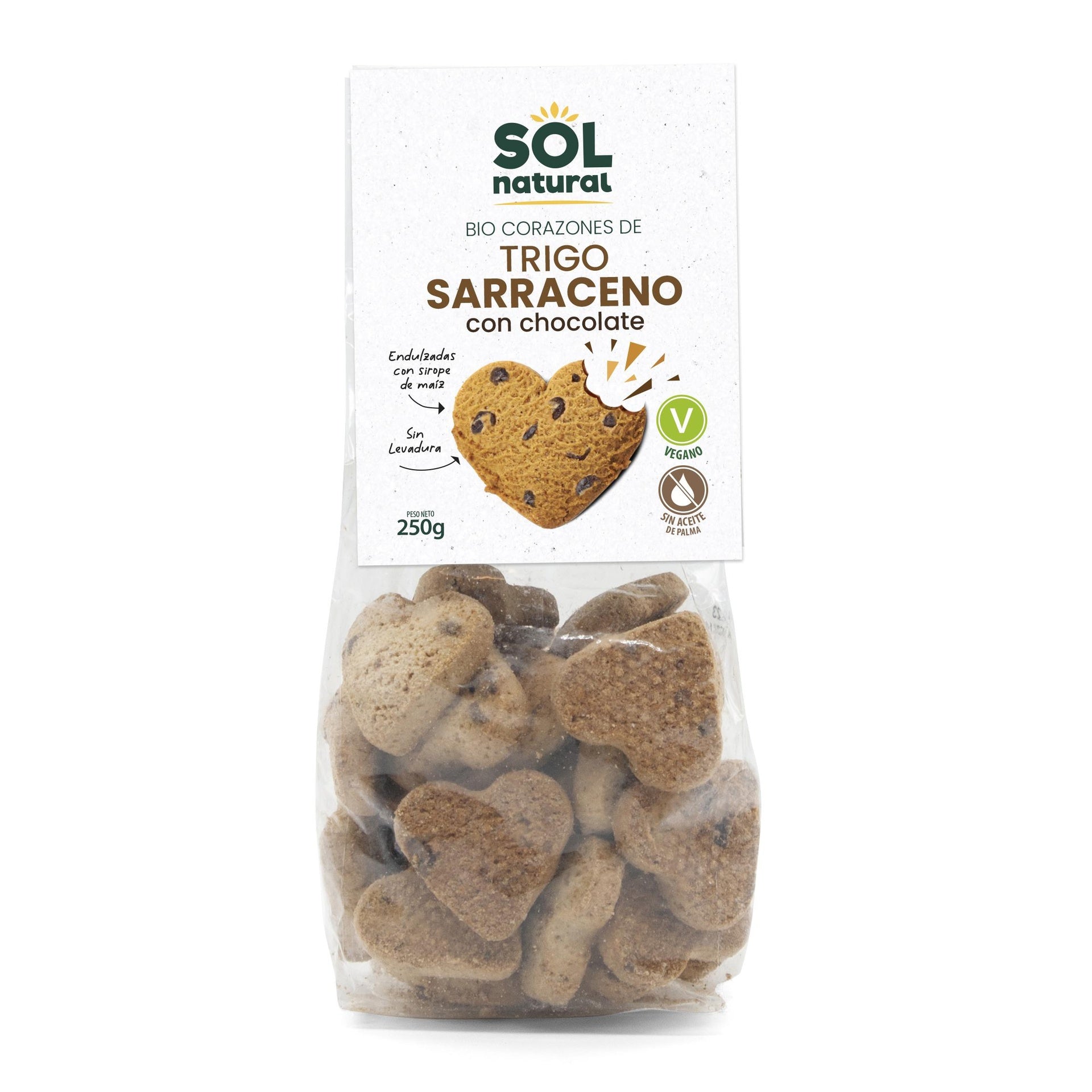 Galletas Corazones de trigo sarraceno con chips de chocolate bio Sol Natural 250 g