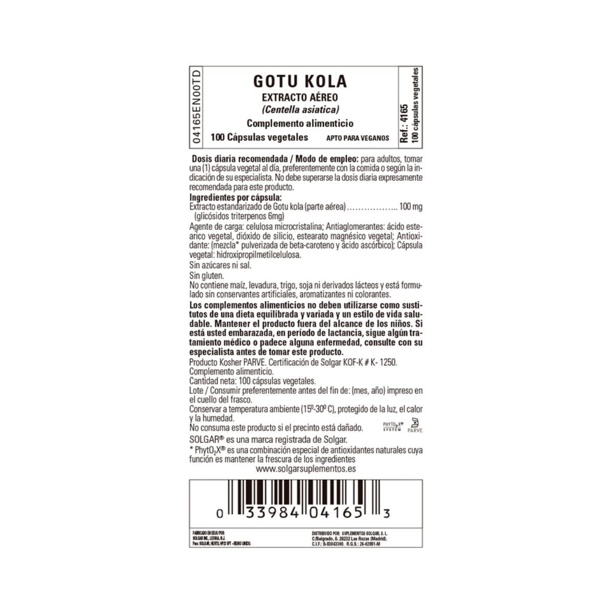 El Gotu Kola (Centella Asiática) de Solgar favorece la producción y la estabilidad del colágeno, mejorando la resistencia y permeabilidad capilar. Contiene una serie de principios activos naturales (principalmente glicosaminoglicanos) que le confieren importantes propiedades a nivel del sistema circulatorio y la piel.