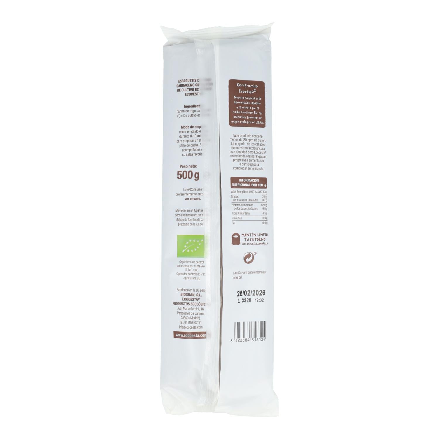 Wszystkie informacje na temat "Pack 2x Espaguetis de Trigo Sarraceno sin gluten BIO Ecocesta, 500 g"