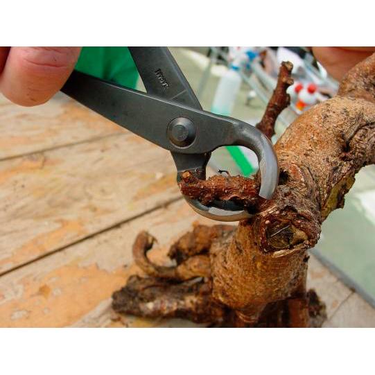 Vaciadora cóncava de 210 mm. Herramienta de bonsái diseñadas para efectuar un corte concavo (más profundo hacia el centro que la podadora), permitiendo que los labios de la herida cierren rápido, dejando un espacio para que al crecer el callo de cicatrización no deje abultamientos en el tronco. Ideales para cortar ramas en la inserción con la rama principal o el tronco.