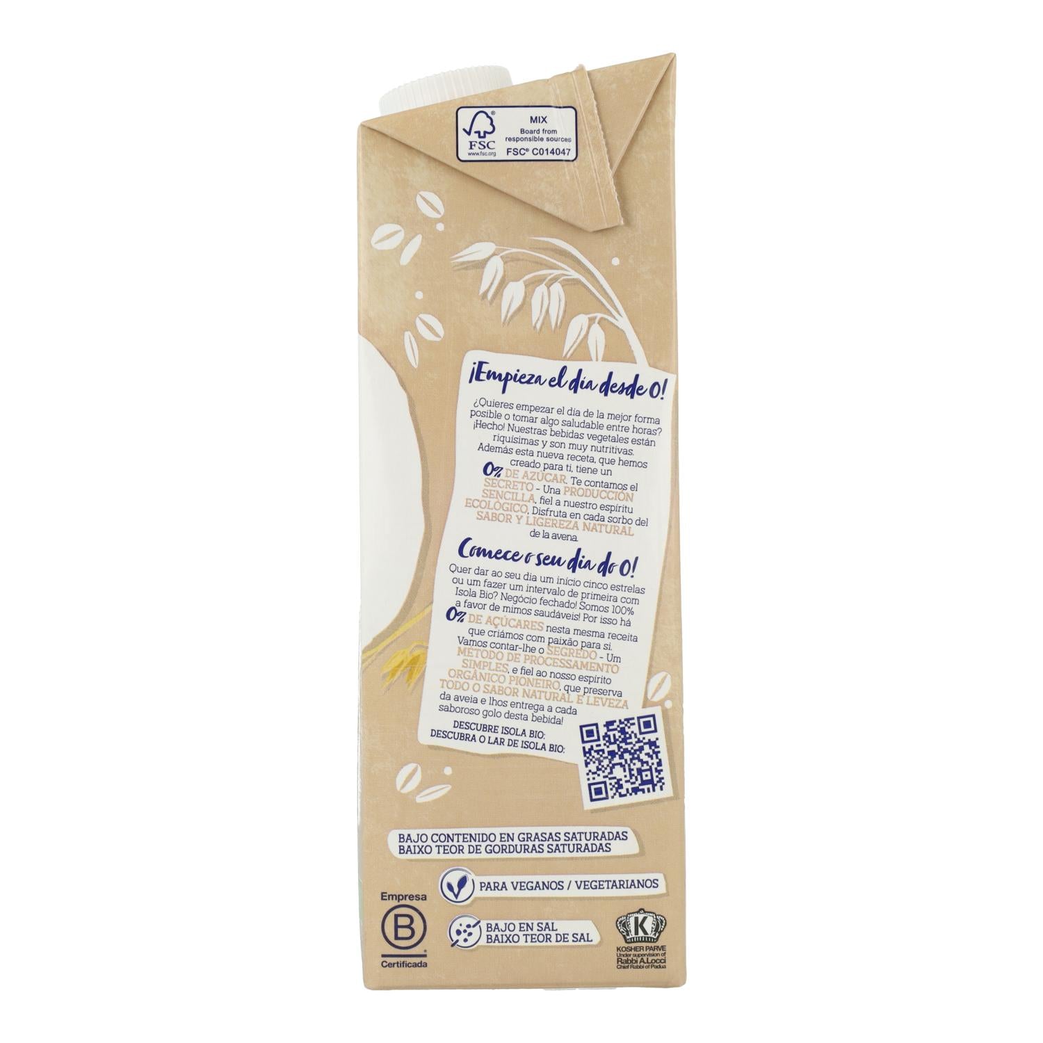 Bebida de Avena 0% azúcares BIO, 1L. Isola Bio