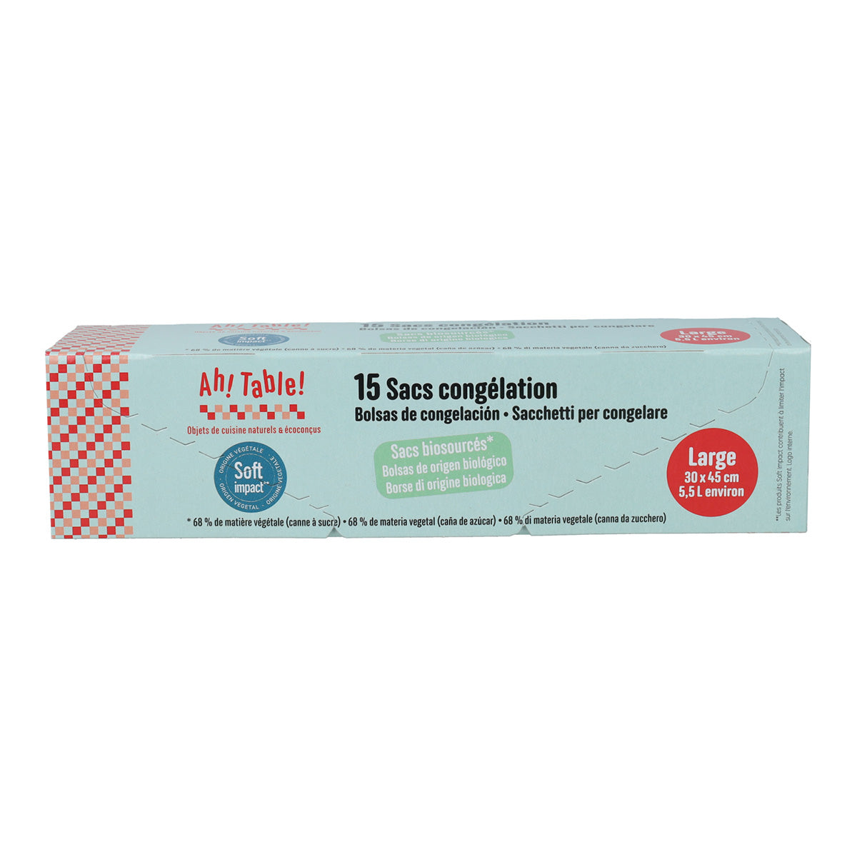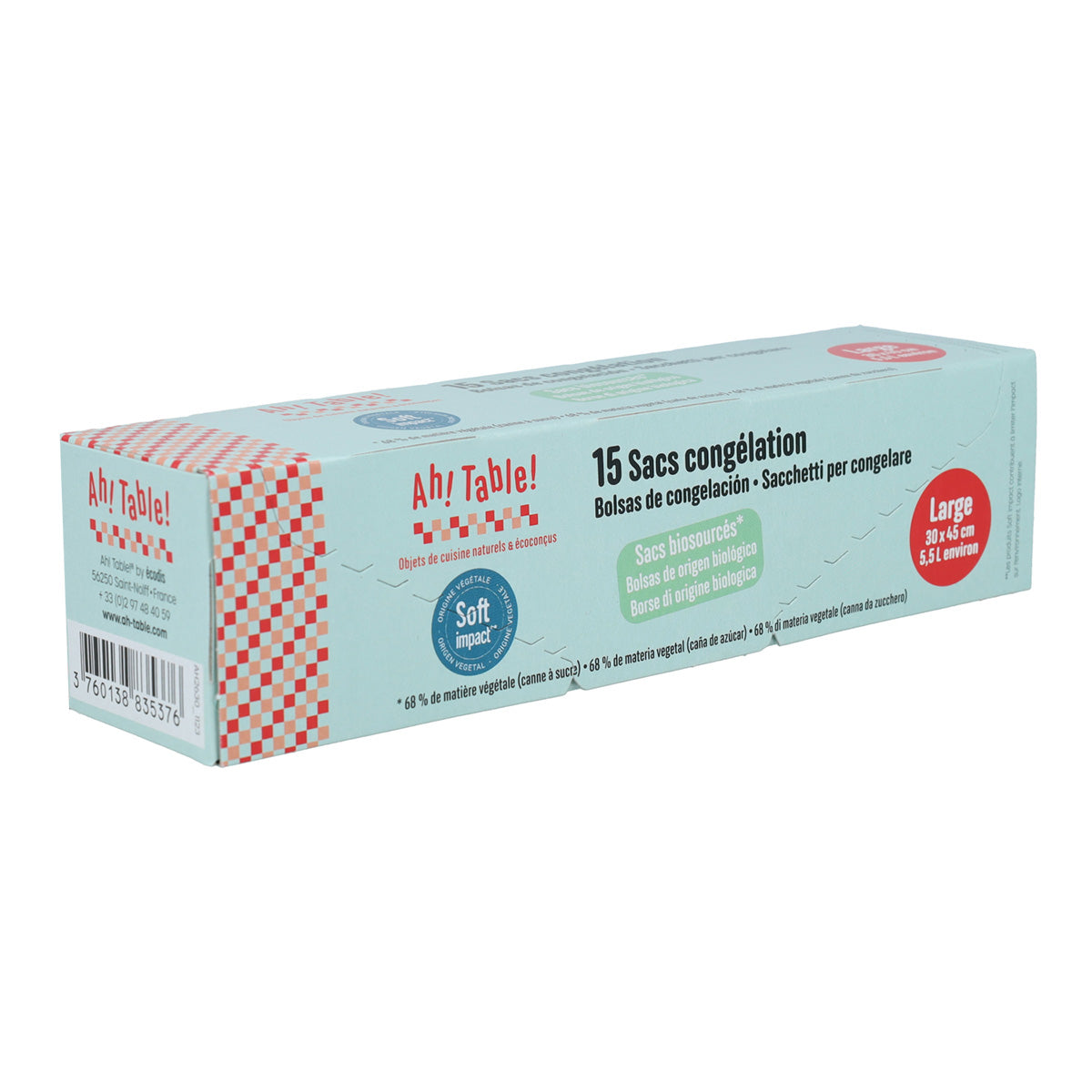 Bolsas Congelar/Conserva 30x45 Mm de AhTable bolsas reciclables, hechas de 68% de polietileno a partir de etanol de la caña de azúcar.