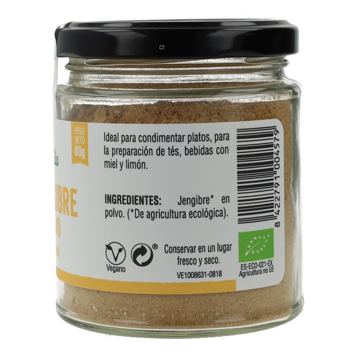 El Jengibre en polvo Bio es un producto natural, obtenido de jengibre de agricultura ecológica, libre de lactosa, conservantes, colorantes, transgénicos, grasas hidrogenadas y azúcares añadidos. Ideal para añadir un toque picante y aromático en tus recetas, tanto en cocina como en infusiones.
