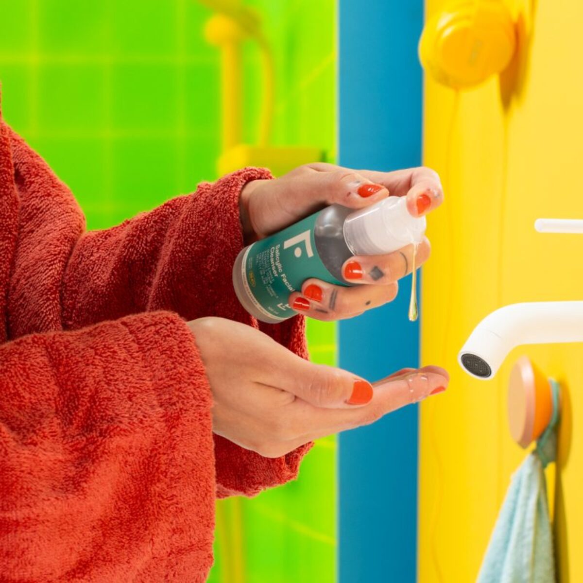2. Humedece el rostro y aplica 2 pulsaciones del Salicylic Facial Cleanser sobre los dedos.
