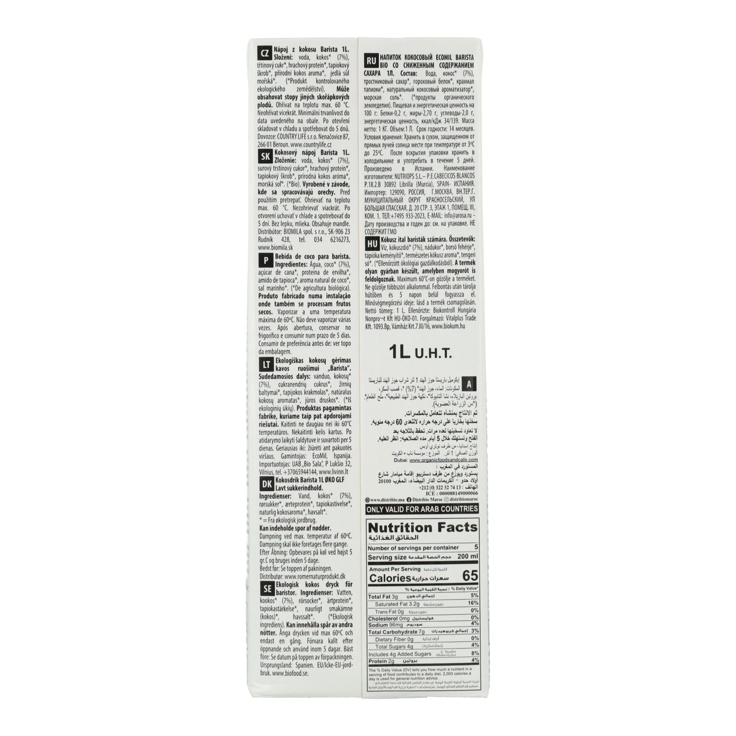 Alle informatie over "Pack 6x Bebida vegetal de Coco Barista BIO EcoMil 1L"