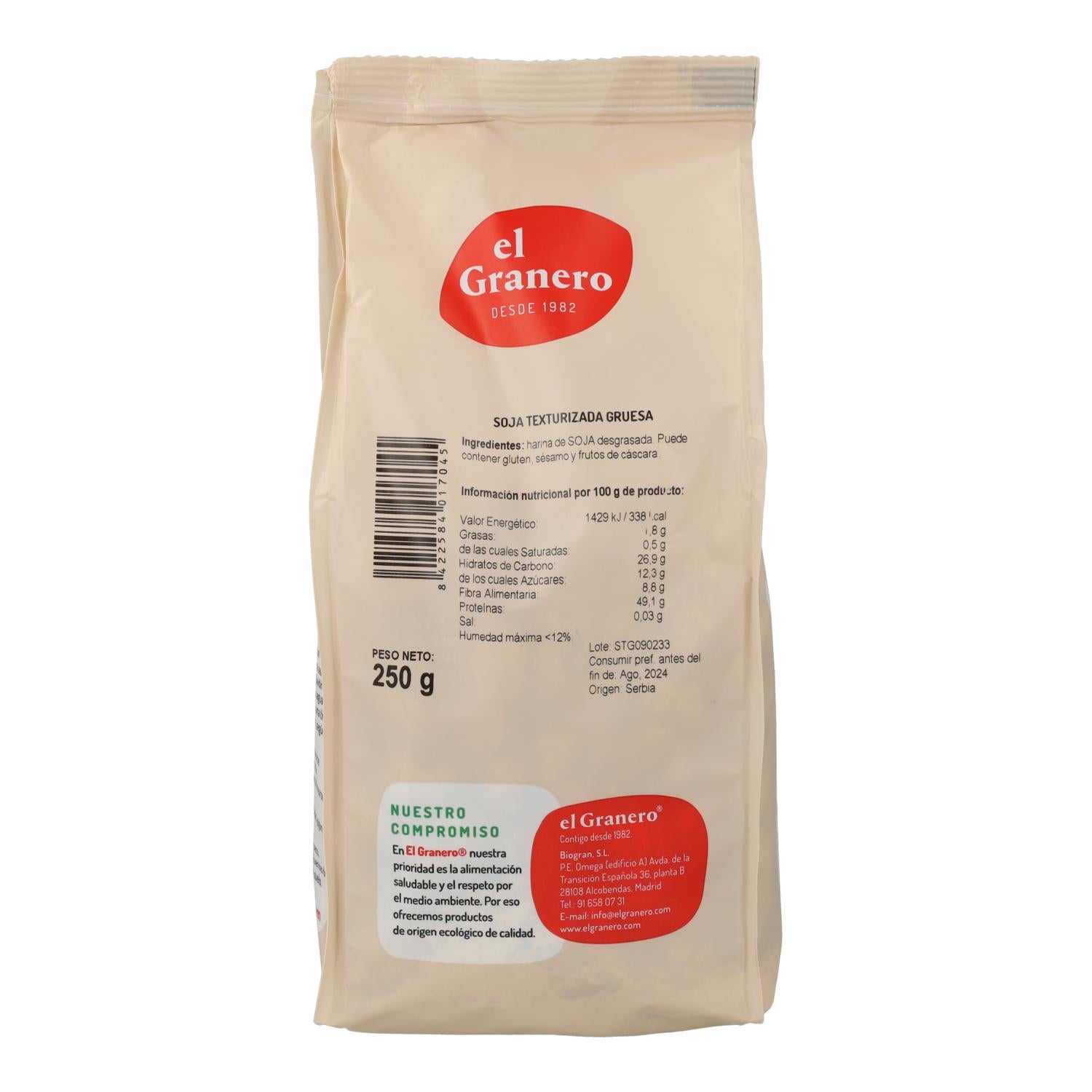 Alle informatie over "Soja Texturizada Gruesa El Granero 250 gr"