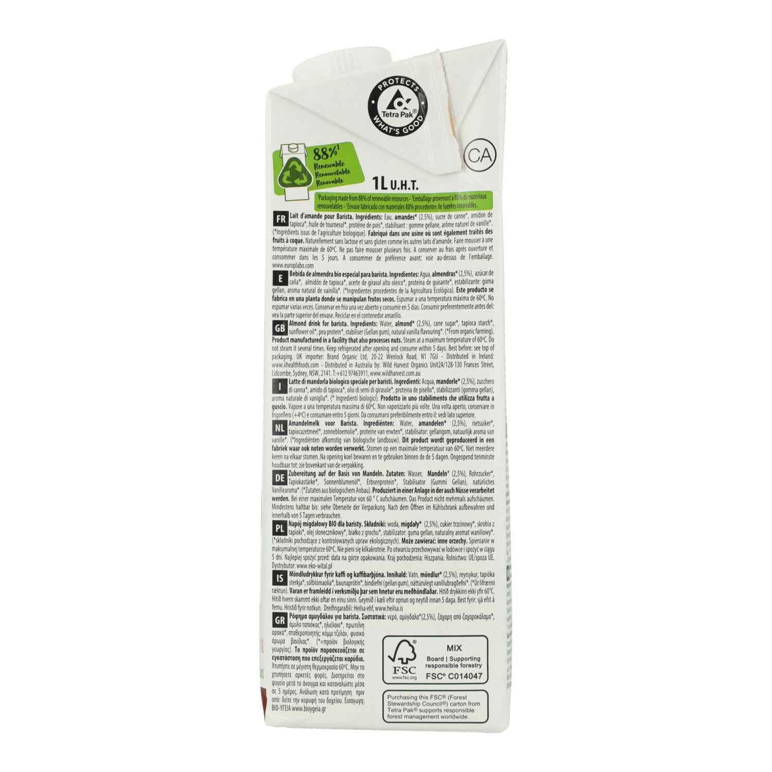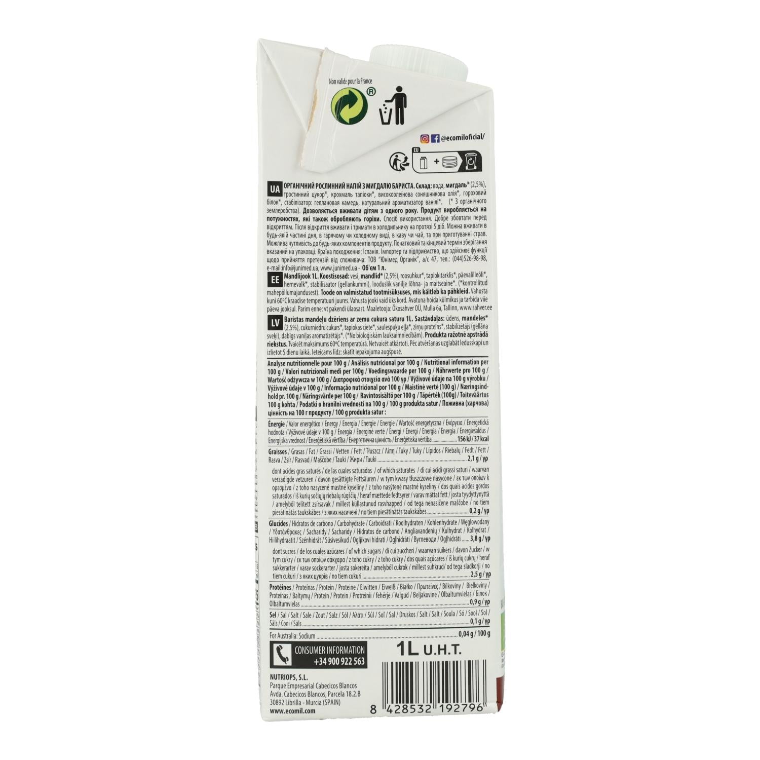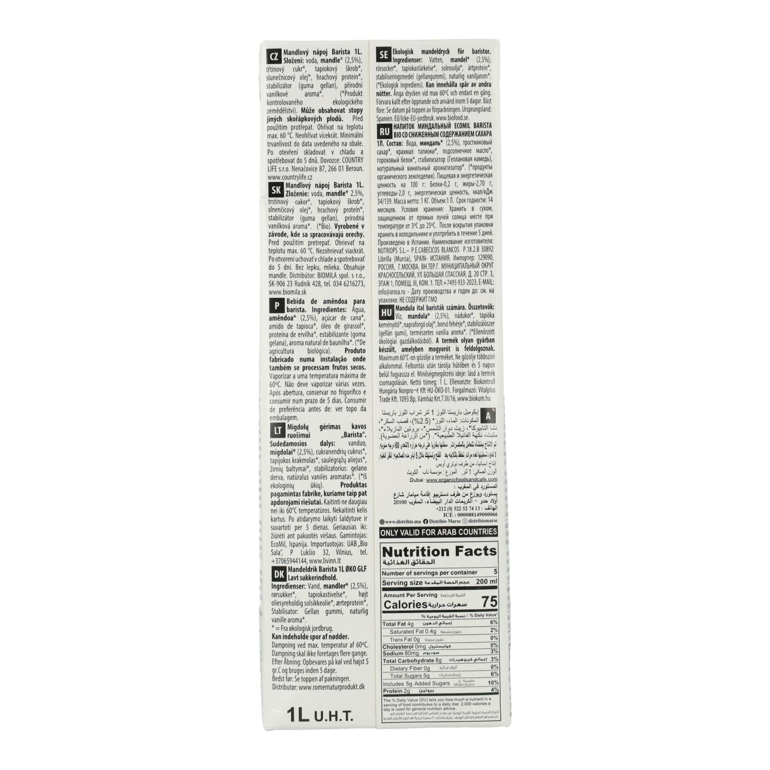 All information om "Vegetabilisk mandeldryck Barista BIO EcoMil 1 l"