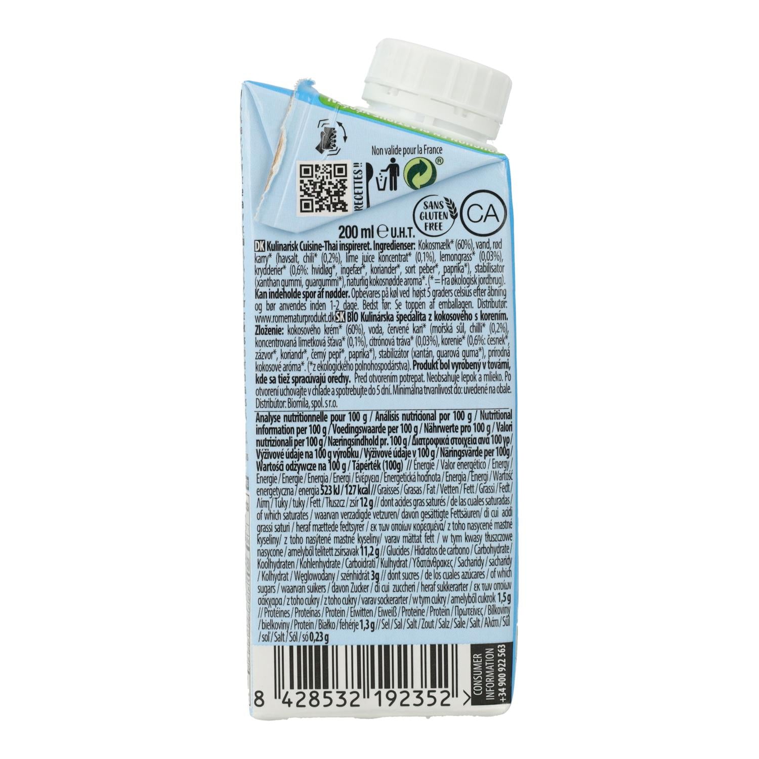 All information om "Ekologisk vegetabilisk grädde Cuisine Coco Thai Ecomil, 200 ml"