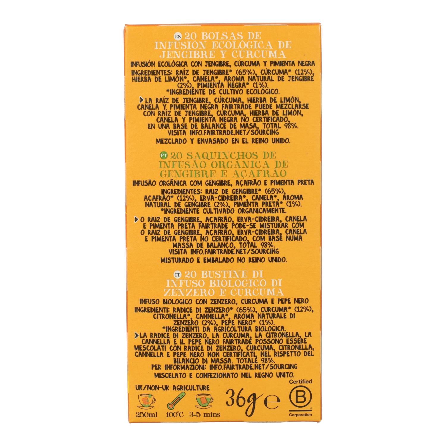 All information om "Infusión de Jengibre y Cúrcuma BIO Cupper 20 bolsitas"
