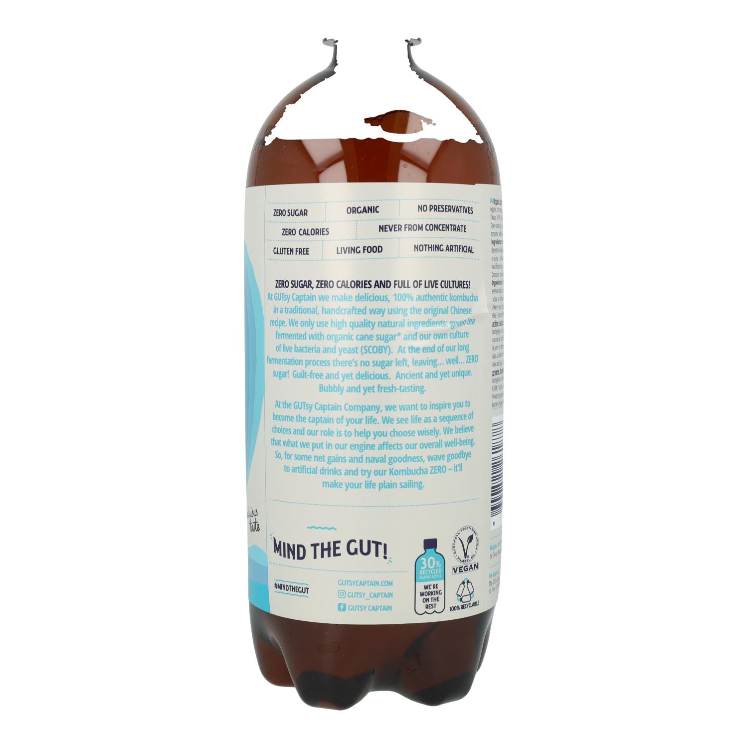 El Captain Kombucha Zero Original Bio 1L es una bebida fermentada artesanal elaborada con té verde orgánico y azúcar de caña ecológica. Mediante un proceso de fermentación prolongado, todo el azúcar se descompone, resultando en una kombucha sin calorías ni azúcares añadidos. Contiene cultivos vivos de bacterias y levaduras (SCOBY), además de Bacillus coagulans, un probiótico que favorece la salud digestiva. Es apta para veganos, sin gluten, sin lactosa, sin conservantes ni colorantes artificiales. Ideal como alternativa saludable a refrescos azucarados.